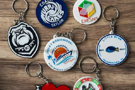 Custom keychains offer compact, functional branding with a wide variety of materials including metal, plastic, leather, and acrylic. They provide everyday exposure, making them popular promotional giveaways or corporate gifts.
